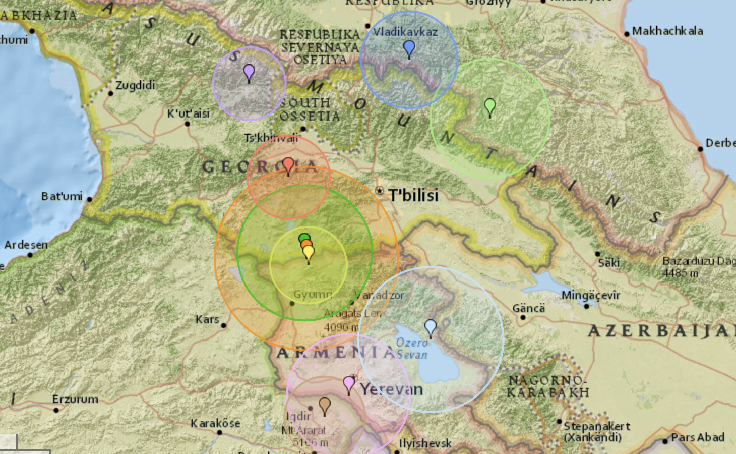 The epicenter of the earthquake was Georgia’s Oni region, 70 km (43 miles) north of Kutaisi. Kutaisi is 236 km (147 miles) west of the capital Tbilisi, where some residents felt the earthquake.