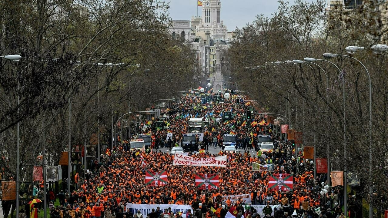 The protest, which a government official estimated drew 150,000 people, was organised by the Rural Alliance, which says it represents 10 million people in Spain.